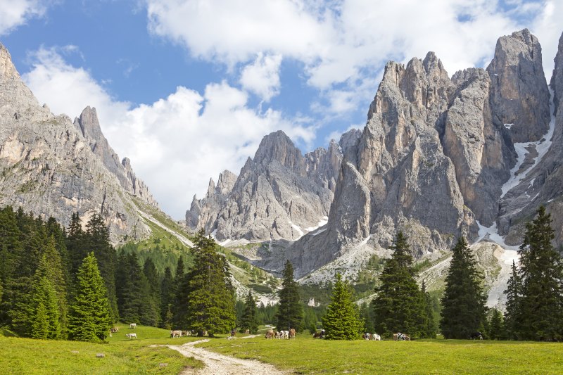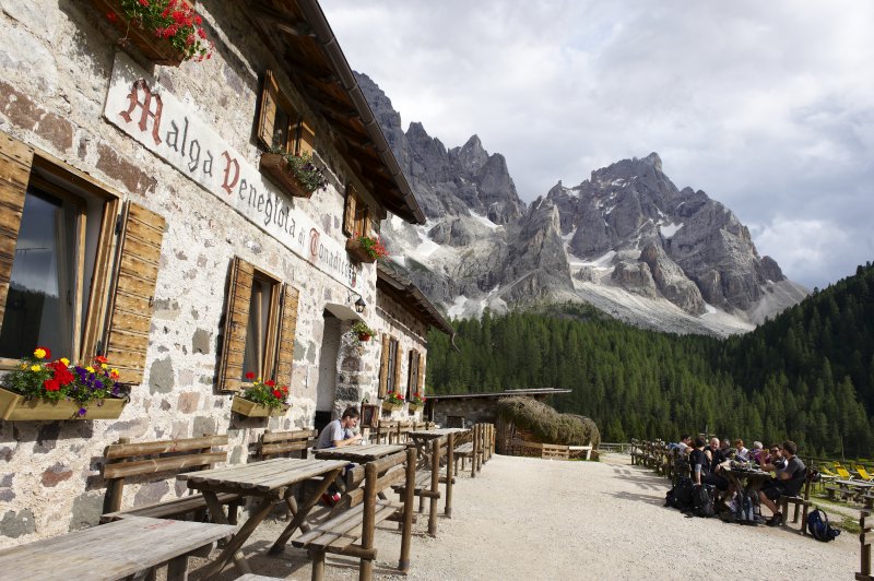 Śniadanie. Spotkanie z przewodnikami i wyjazd do doliny Val Venegia. Spacer doliną do 2 schronisk i powrót do autokaru. Każdy może zdecydować czy idzie dalej do kolejnego schroniska czy zostaje po drodze w pierwszym schronisku i czeka na grupę, która będzie wracała tą samą drogą. Spacer wygodną scieżką. Do pierwszego schroniska około 4 km. Do drugiego kolejne 2 km. W schroniskach czas wolny na posiłek i delektowanie się widokami na jedne z najstarszych gór świata. Powrót do hotelu i obiadokolacja.